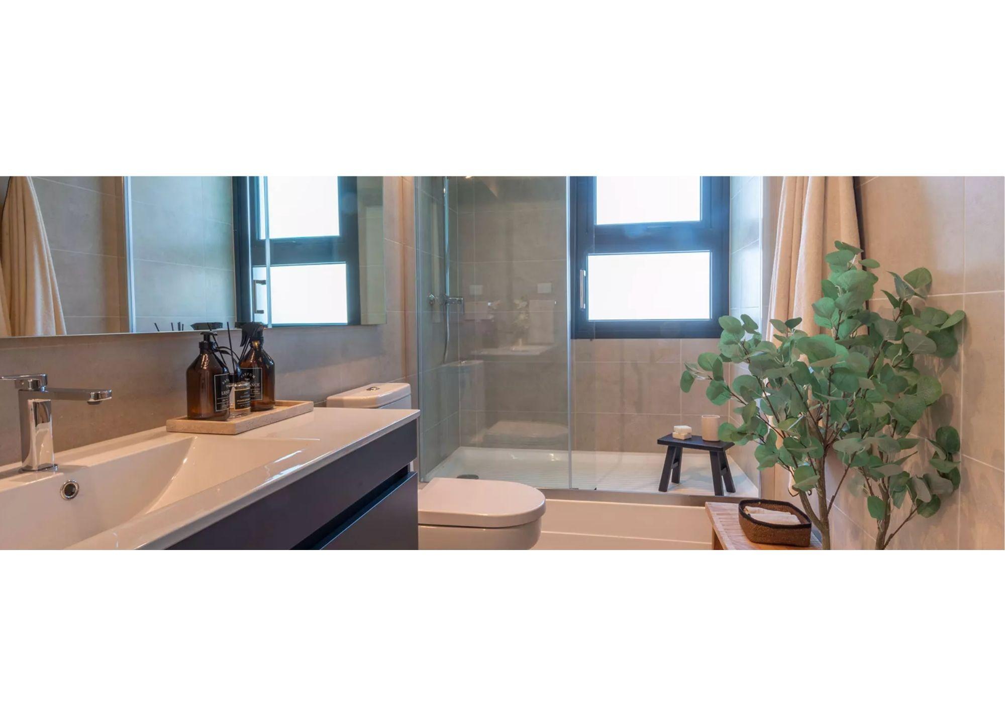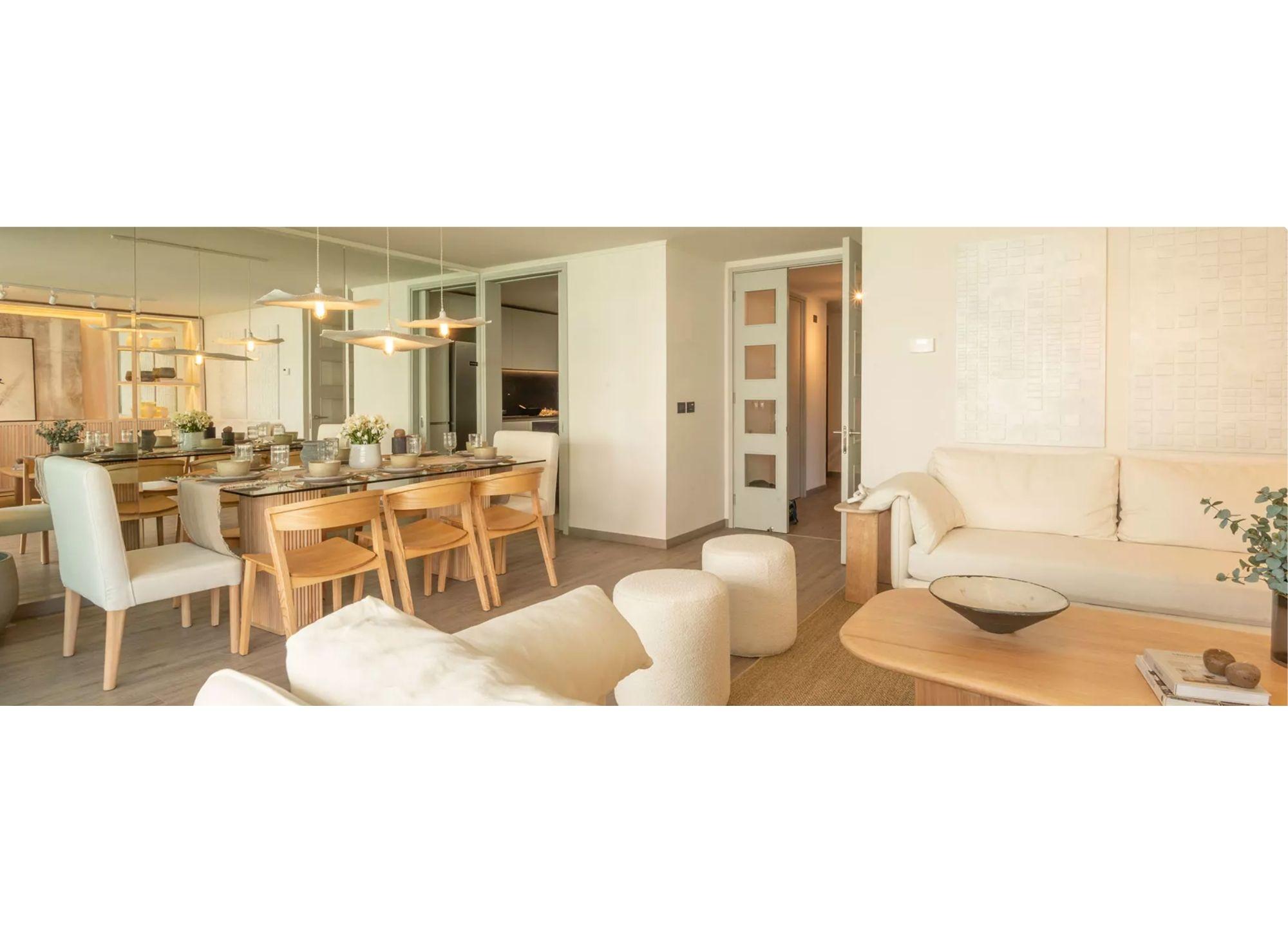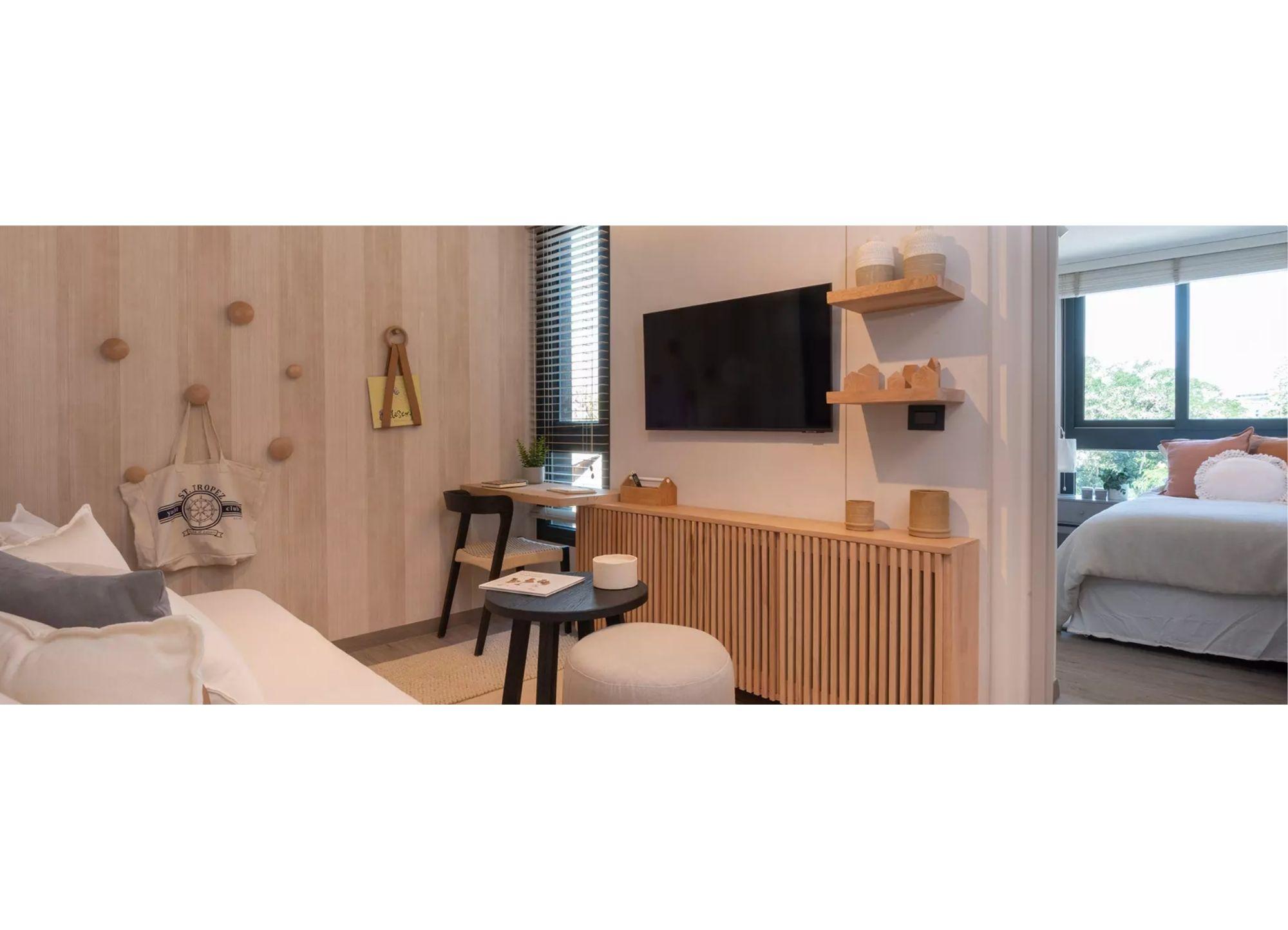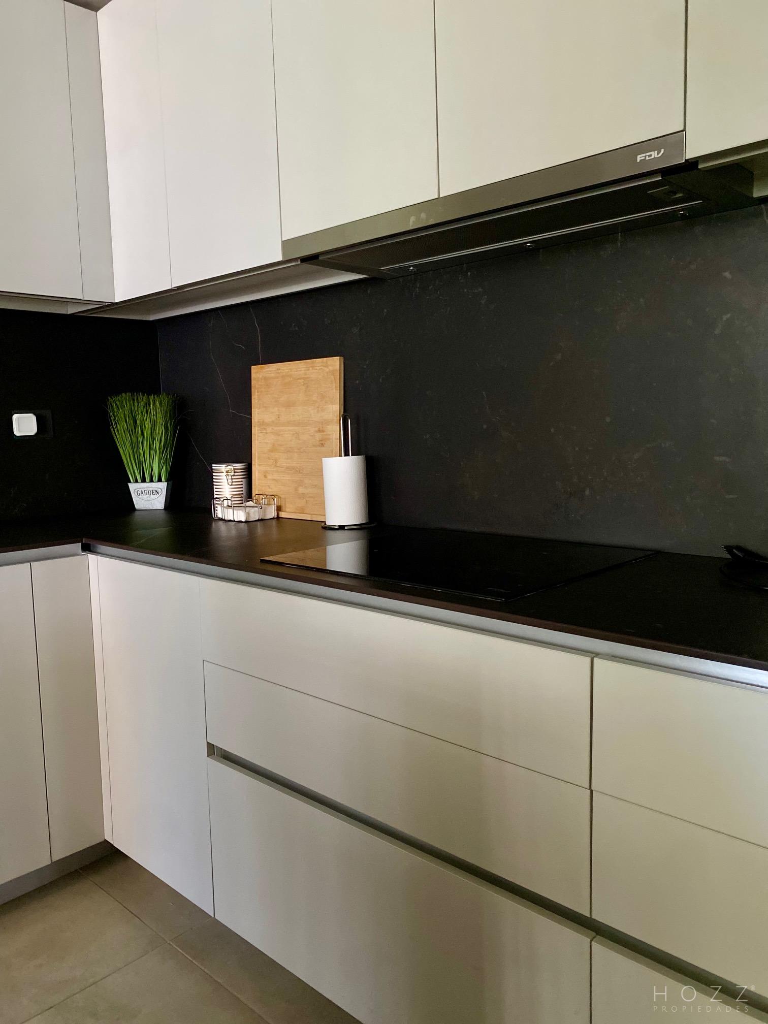 - Cocinas con cubierta porcelanato y equipada con horno, encimera y campana.
